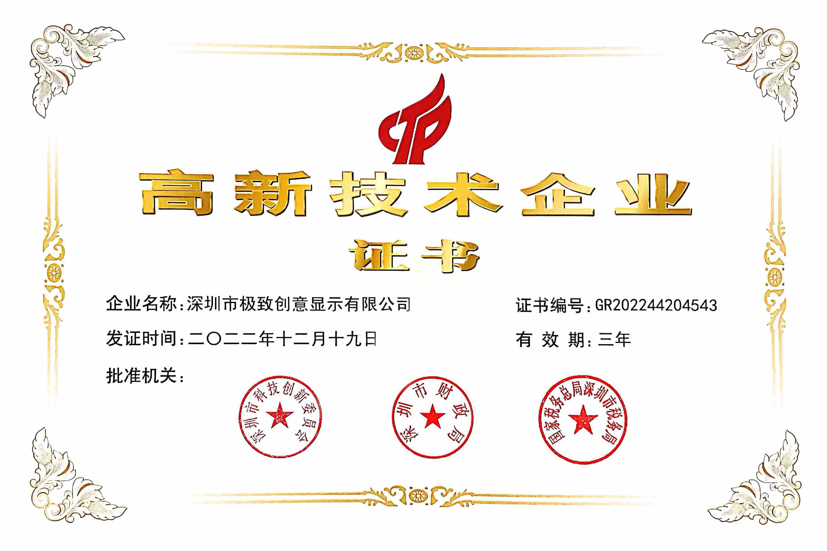 深圳市極致創(chuàng)意顯示有限公司成立于2018年,是一家專(zhuān)注于創(chuàng)意LED顯示屏的研發(fā)、生產(chǎn)、銷(xiāo)售和工程服務(wù)為一體的國(guó)家級(jí)高新技術(shù)企業(yè),是2019年國(guó)慶70周年閱兵大型創(chuàng)意LED顯示屏指定供應(yīng)商,是2021年中華人民共和國(guó)第14屆全國(guó)運(yùn)動(dòng)會(huì)開(kāi)幕式12000平米創(chuàng)意LED顯示屏獨(dú)家供應(yīng)商。
